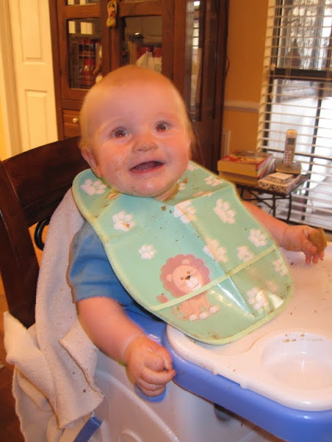 | She got to eat a graham cracker. She had it everywhere. We had to bathe her after this snack. |
